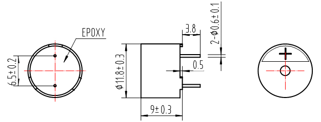 | 4 | 輸出音壓(dB)10cm | Min. 85dB,at 2400Hz 50% duty Square Wave 5Vo-p |